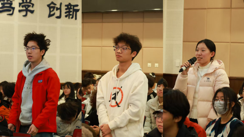 在交流环节,同学们围绕就业方向、行业前景等话题积极提问,孙衍龙逐一作出细致解答与分享。