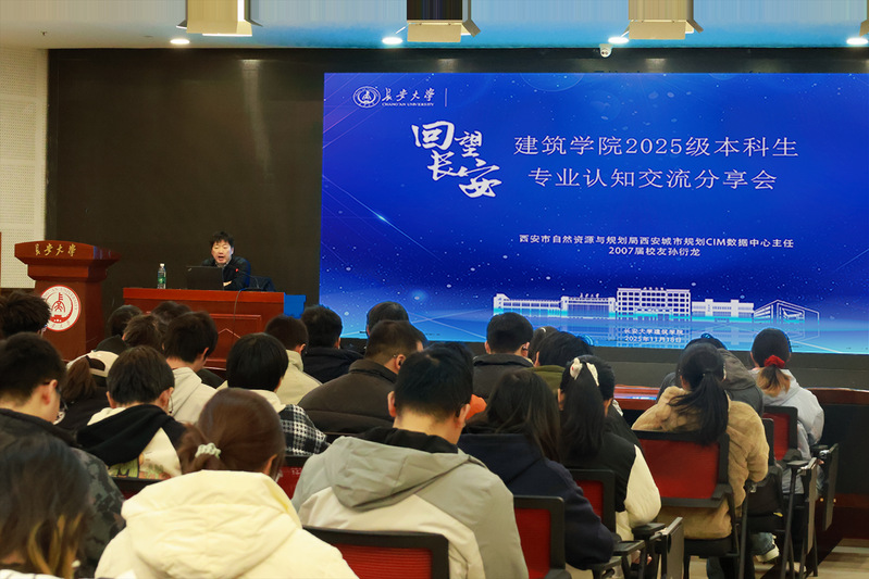 11月18日下午,国产无码 在长安文化艺术中心三楼多功能厅举办“回望长安”论坛第七季第二期——本科生专业认知交流分享会。活动邀请了2007届优秀校友、西安市城市规划CIM数据中心主任孙衍龙担任主讲嘉宾,国产无码党委副书记王妍婷,新生辅导员与全体2025级本科生参加。